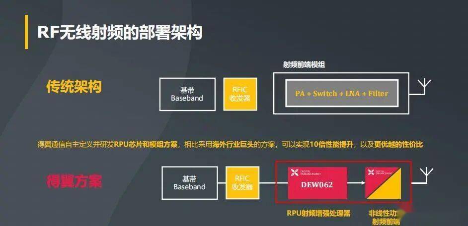 得翼通信以 “用数字造射频” 为核心,推出 AI 驱动的独立射频增强处理器(RPU),通过数字预失真(DPD)技术重构射频架构,在核心性能与适配性上实现对传统方案的全面超越。RPU 芯片的核心竞争力不仅在于其贯穿全场景的性能优势,更在于通过内置智能算法与云端协同架构,构建 “芯片 - 算法 - 云端” 的技术闭环,既破解当下场景痛点,更打开未来通信与智能应用的广阔空间。