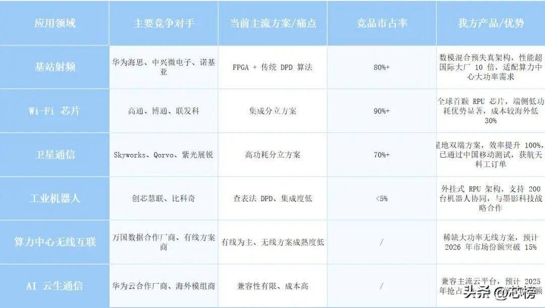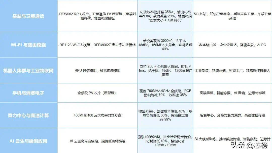 l 产品矩阵完善:围绕 RPU 技术延伸出 “芯片 + 模组 + 解决方案” 的全链条产品,精准匹配不同行业的差异化需求,覆盖通信基础设施、消费电子、工业物联网、卫星通信等多个领域。